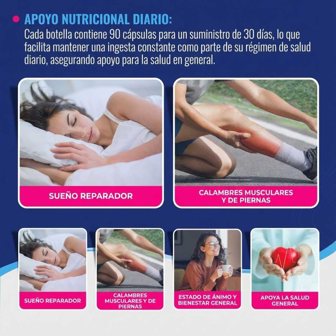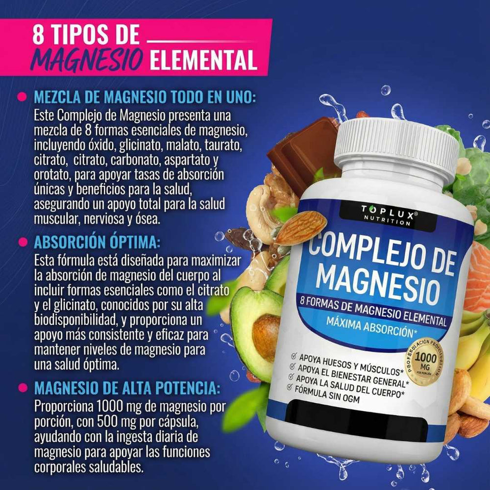 Aquí recibes apoyo de varias formas de magnesio a la vez, pensadas para que tu cuerpo las use mejor en el día a día.